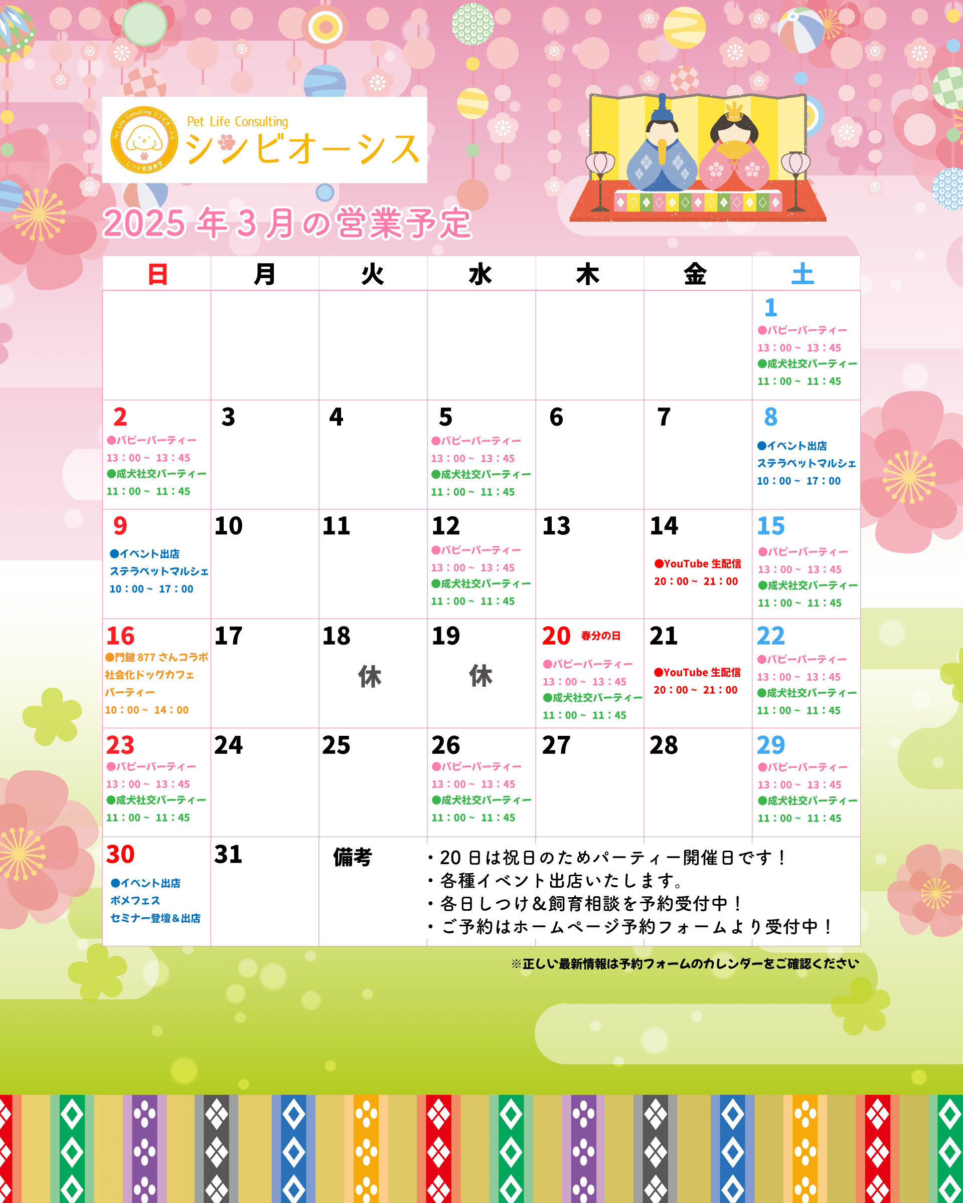 2025年3月の営業予定を更新しました