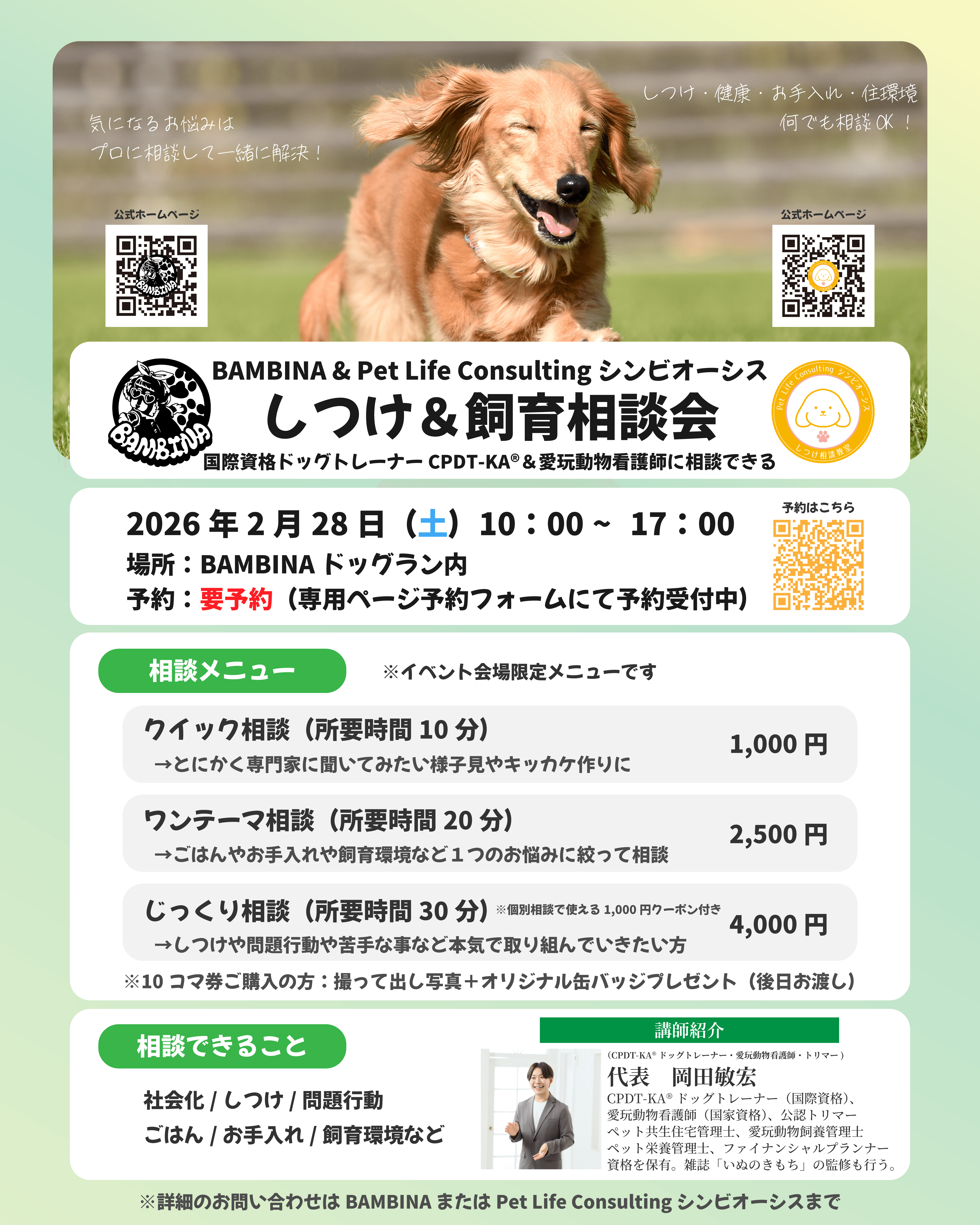 【イベント】BAMBINAドッグランしつけ・飼育相談会2026年2月28日開催!